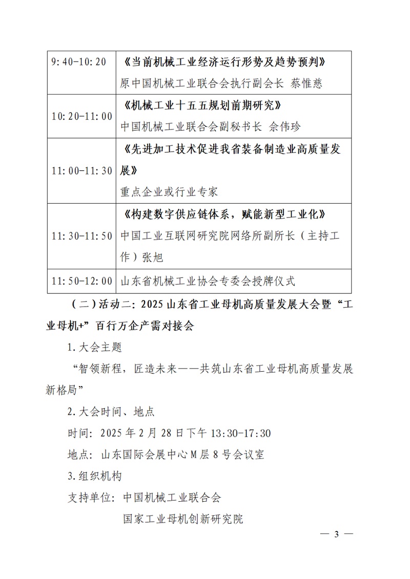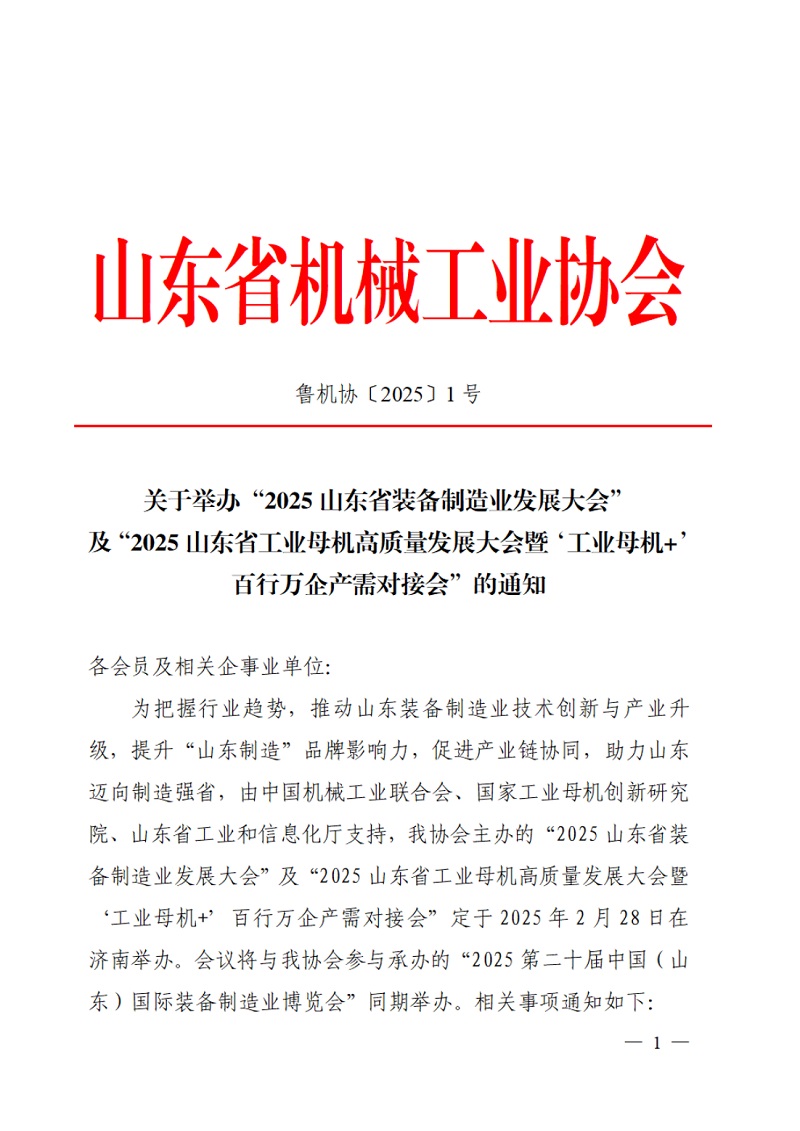 關(guān)于舉辦“2025 山東省裝備制造業(yè)發(fā)展大會(huì)及“2025 山東省工業(yè)母機(jī)高質(zhì)量發(fā)展大會(huì)百行萬企產(chǎn)需對(duì)接會(huì)”的通知